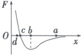 例7 (多选)如图所示,甲分子固定于坐标原点$O$,乙分子位于$x$轴上,甲、乙两分子间的作用力与两分子间距离的关系如图中曲线所示,$F > 0$表示斥力,$F < 0$表示引力。$a$、$b$、$c$、$d为x$轴上四个特定的位置,现将乙分子从$a$点由静止释放,在其从$a点移动到d$的过程中,下列说法正确的是 (