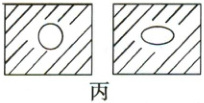 2. 在玻璃片和云母片上分别涂上一层很薄的石蜡,然后用烧热的钢针去接触玻璃片及云母片的另一面,石蜡熔化,如图丙所示,那么你看到的现象及得出的结论是什么?