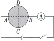 例 3 如图所示, ACBD 是一块厚度均匀的由同一种微粒构成的圆板, AB 和 CD 是互相垂直的两条直径,把圆板从图示位置转 $ 90° $ 后电流表示数发生了变化 (两种情况下都接触良好),关于圆板,下列说法正确的是(