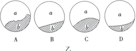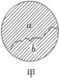 如图甲所示,金属框上阴影部分表示肥皂膜。它被棉线分割成 $ a $、$ b $ 两部分。若将肥皂膜的 $ a $ 部分用烧热的针刺破,棉线的形状是图乙中的哪一个?为什么?