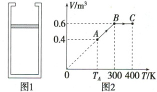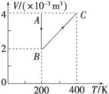 (2)气体从A到B过程中对外做功W=p_A(V_B-V_A)根据热力学第一定律ΔU=Q-W联立得ΔU=7.5×10³ J即此过程中内能增加7.5×10³ J。