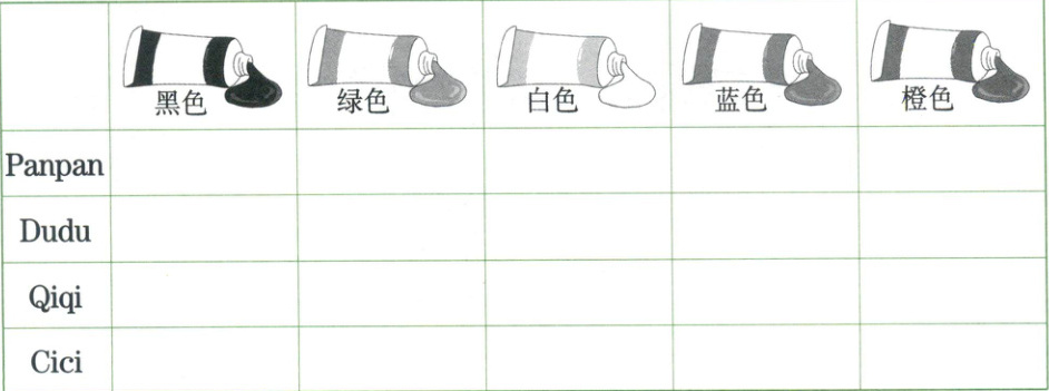 四、典典做了一个关于朋友们喜欢的颜色的调研表格。读一读,完成下列任务。