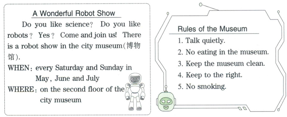 五、〔新材料〕阅读机器人展览的宣传海报及博物馆规则,判断句子正(T)误(F)。
