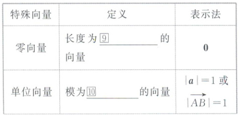 (2)字母表示法:若向量 $a$ 的起点是 $A$,终点是 $B$,则向量 $a$ 也可以记作⑥