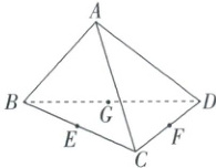 如图,已知空间四边形 $ABCD$,连接 $AC$,$BD$,点 $E$,$F$,$G$ 分别是 $BC$,$CD$,$BD$ 的中点,请化简: