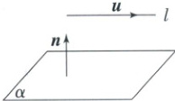 设 $ \boldsymbol{u} $ 是直线 $ l $ 的方向向量,$ \boldsymbol{n} $ 是平面 $ \alpha $ 的法向量,$ l \not\subset \alpha $,则 $ l // \alpha \Leftrightarrow \boldsymbol{u} $ ①