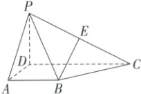 因为$\overrightarrow{BE}\cdot\overrightarrow{DC}=(-1)×0 + 0×2 + \frac{1}{2}×0 = 0$,所以$\overrightarrow{BE}⊥\overrightarrow{DC}$,因为$BE\not\subset$平面PAD,所以$BE//$平面PAD。