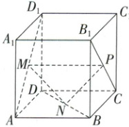 [证明] 以D为坐标原点,DA,$\overrightarrow{DC}$,$\overrightarrow{DD_{1}}$的方向分别为x,y,z轴的正方向,建立空间直角坐标系。设正方体的棱长为2,则$D(0,0,0)$,$A(2,0,0)$,$M(1,0,1)$,$N(1,1,0)$,$P(1,2,1)$。