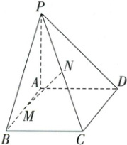 如图,已知 $ PA \perp $ 平面 $ ABCD $,底面 $ ABCD $ 为正方形,$ PA = AD = AB = 2 $,$ M $,$ N $ 分别为 $ AB $,$ PC $ 的中点。求证:$ MN \perp $ 平面 $ PCD $。