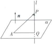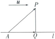 如图,直线l的单位方向向量为$\mathbf{u}$,A是直线l上的定点,P是直线l外一点.设$\overrightarrow{AP} = \mathbf{a}$,则向量$\overrightarrow{AP}$在直线l上的投影向量$\overrightarrow{AQ} = (\mathbf{a} \cdot \mathbf{u})\mathbf{u}$.在$Rt \triangle APQ$中,由勾股定理,得点P到直线l的距离为$PQ = \sqrt{|\overrightarrow{AP}|^{2} - |\overrightarrow{AQ}|^{2}} = $