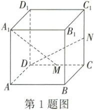 1. 如图,在正方体 $ABCD - A_{1}B_{1}C_{1}D_{1}$ 中,$M$,$N$ 分别是 $CD$,$CC_{1}$ 的中点,则直线 $A_{1}M$ 与 $DN$ 的位置关系是( )
