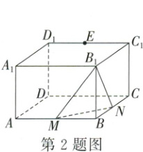 2. (2025·天津市河东区期中)如图,在长方体 $ABCD - A_{1}B_{1}C_{1}D_{1}$ 中,$AD = AA_{1} = 2$,$AB = 4$。$E$,$M$,$N$ 分别是棱 $C_{1}D_{1}$,$AB$,$BC$ 的中点。若点 $P$ 是平面 $A_{1}ADD_{1}$ 内的动点,且满足 $PE //$ 平面 $B_{1}MN$,则线段 $PE$ 长度的最小值为______。