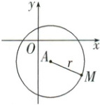 已知圆心为 $ A(a,b) $,半径为 $ r $,设圆上任一点 $ M(x,y) $,你能得到 $ x $,$ y $ 的关系吗?