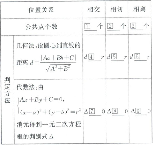 直线 $ Ax + By + C = 0 $ 与圆 $ (x - a)^2 + (y - b)^2 = r^2 $ 的位置关系的判断