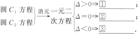 $\begin{cases}圆 C_1 方程 \\圆 C_2 方程\end{cases} \xrightarrow{消元}\begin{cases}\Delta > 0 \Rightarrow ①