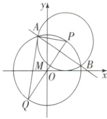 (1)证明:因为$PQ$为圆$M$的直径,所以$\angle PAQ$为直径$PQ$所对的圆周角,所以$\angle PAQ = 90^{\circ}$,所以$PA\perp QA$,所以直线$QA$与圆$P$相切.