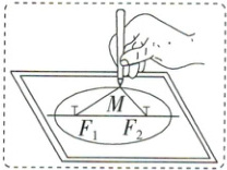 如果把细绳的两端拉开一段距离,分别固定在图板中的两点$F_{1}$,$F_{2}$(如图),套上铅笔,拉紧绳子,移动笔尖,画出如图所示的轨迹。