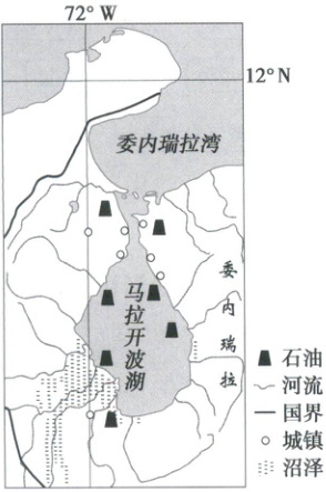 马拉开波湖(见下图)位于委内瑞拉西北部,是世界上产量最高、开采历史最悠久的“石油湖”。20世纪之前,湖内水产丰富,湖水清澈,湖水仅通过一条狭窄的水道同外海连接,海水很难进入湖区内。但为了发展湖区的采油业,人们将连接外海的水道拓宽、挖深,并定期清淤,以便大吨位的货轮和油轮驶入。随着石油资源的开发,沿岸人口激增,湖区水产养殖和湖岸畜牧业发展迅速,供应了委内瑞拉绝大部分的农副产品。近年来,马拉开波湖生态环境问题日益加剧,湖泊富营养化问题突出,湖水颜色经历了由“黑”到“绿”的变化过程。
