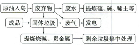 石油化工业属于重污染产业,选择在海岛发展主要是因为石油大部分通过海上运输,炼油过程中需要大量海水作为冷却水,加上本身的高危险性,不适合在人口集聚的陆地发展,石油化工业可通过产业链内部各环节废弃物资源化实现循环利用。下图为我国南方某海岛石油产业循环图。读图,完成1~3题。