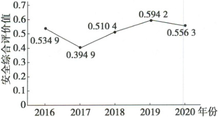 (2024·河北邢台高二校联考阶段练习) 黑龙江省位于我国东北地区,降水量年际变化大,水资源安全综合评价值波动变化大,水资源安全需要进一步提升。下图为黑龙江水资源安全综合评价值变化曲线图(数值越大越安全)。据此完成3~4题。
