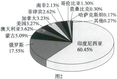 (2)特点:煤炭进口来源国较多;最大的煤炭进口来源国为印度尼西亚,其次为俄罗斯,其余国家进口量占比相对较小。有利影响:有利于保障我国煤炭的稳定供给;有利于获得更加优惠的煤炭进口价格;有利于增加我国煤炭资源的储备,保障能源安全。