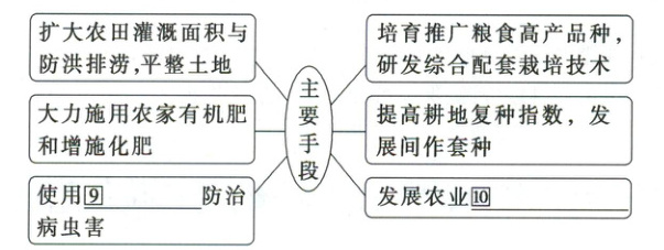 (2) 主要环节:粮食生产、①____、流通、进出口。