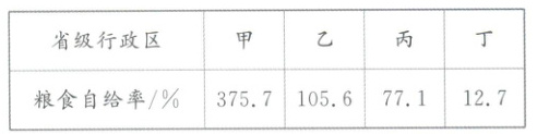 解析:第3题,粮食自给率指当年粮食产量占当年粮食消费量的比重,我国粮食自给率整体上北高南低,东高西低,东北最高,东南最低。读表可知,丙粮食自给率位于四个地区中的第三位,产量无法满足消费量,排除黑土广布的黑龙江以及长江中游地区的湖北。结合所学知识可知,上海位于长江中下游平原地区,粮食自给率原则上应当比较高,但是由于城镇化进程不断加快,上海产业结构中第一产业占比很小,农田面积较少,基本无种植业,故上海为丁。西藏位于青藏高原,农业发展条件较差,但人口较少,粮食自给率比上海高,故丙为西藏,A正确。第4题,根据上题分析可知,甲为黑龙江、乙为湖北、丙为西藏、丁为上海。黑龙江地广人稀,土壤肥沃,推广机械化种植,劳动生产率高,①正确;湖北人口较多,②错误;西藏生态脆弱,人均耕地较少,③正确;上海市场需求大,非粮化现象突出,④正确。故选C。
