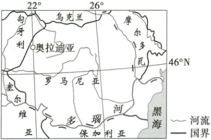 罗马尼亚边境城镇奥拉迪亚(下图)一座金矿曾发生氰化物废水泄漏,废水流入河流,并扩散到匈牙利、塞尔维亚境内,导致河中近 80%的鱼类死亡。据此完成 1~2 题。