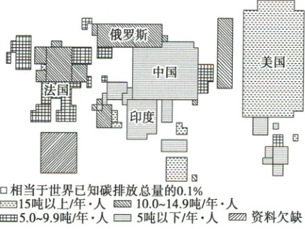 材料一 下图示意 21 世纪初世界部分国家碳排放状况分布。