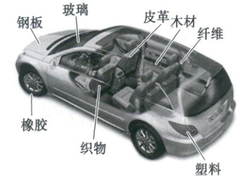 在日常生活中,人们的衣、食、住、行都离不开自然资源。据统计,一辆普通家用轿车仅车体就由钢板、橡胶、玻璃等数百种材料构成,下图为普通家用轿车车体材料示意图,下表为加工车体材料所使用的原料表。