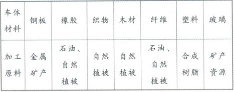 (1)表中所示车体材料或加工原料,哪些是自然资源?哪些不是自然资源?【基础性】