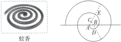 蚊香具有悠久的历史,我国蚊香的发明与古人端午节的习俗有关。如图为某校数学社团用数学软件制作的“蚊香”。画法如下:在水平直线上取长度为 1 的线段 $ AB $,作一个等边三角形 $ ABC $,然后以点 $ B $ 为圆心,$ AB $ 为半径逆时针画圆弧交线段 $ CB $ 的延长线于点 $ D $(第一段圆弧),再以点 $ C $ 为圆心,$ CD $ 为半径逆时针画圆弧交线段 $ AC $ 的延长线于点 $ E $,再以点 $ A $ 为圆心,$ AE $ 为半径逆时针画圆弧……以此类推,当得到的“蚊香”恰好有 15 段圆弧时,“蚊香”的长度为 (