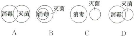 D.消毒和灭菌的圆圈有部分重叠,且灭菌的圆圈更大
