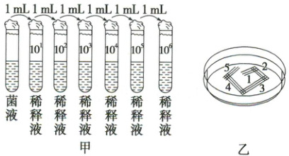)A.图甲中涂布前要将涂布器灼烧,冷却后才能接触菌液