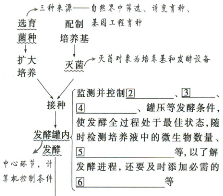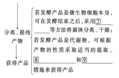 ①微生物的特定功能 ②温度 ③pH ④溶解氧 ⑤产物浓度 ⑥营养成分 ⑦过滤、沉淀 ⑧分离 ⑨纯化