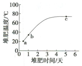 选D。由题意可知,目标菌应该具备嗜热和能分解角蛋白的能力,由题图可知,c点时堆肥温度达到最高且维持恒定,所以应从c点取样,并且用角蛋白为唯一氮源的培养基进行筛选,D符合题意。