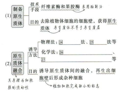 ㉒杂种细胞 ㉓新植物体 ㉔电融合 ㉕离心 ㉖聚乙二醇(PEG)融合法 ㉗高Ca²⁺—高pH融合法 ㉘远缘杂交