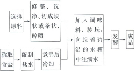 (2)①选择密封性好的泡菜坛;②加入蔬菜后注入煮沸并冷却的盐水,使盐水没过全部菜料;③盖上坛盖后在坛盖边沿的水槽中注满水。