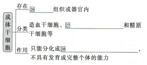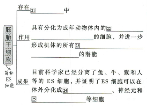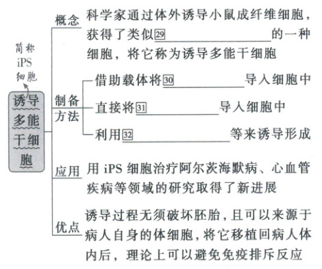㉑早期胚胎 ㉒任何一种类型 ㉓组织和器官甚至个体 ㉔心肌细胞 ㉕造血干细胞 ㉖成体 ㉗神经干细胞 ㉘特定的细胞或组织 ㉙胚胎干细胞 ㉚特定基因 ㉛特定蛋白 ㉜小分子化合物