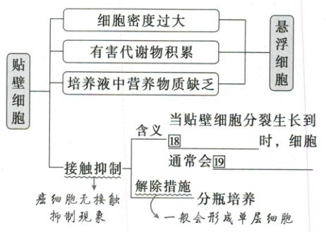 (2) 贴壁细胞:贴于某些基质表面才能生长增殖的细胞,往往贴附在培养瓶的⑰