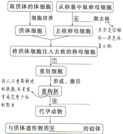 ①细胞核 ②重新组合 ③新胚胎 ④胚胎细胞核移植 ⑤全能性