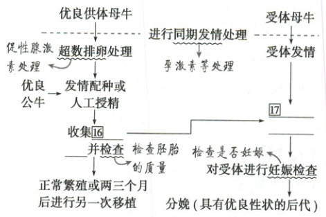 2. 步骤:胚胎移植主要包括供体、受体的⑬