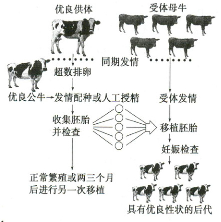 (4)供体应选择遗传性状优良、生产能力强的个体;受体应选择有健康的体质和正常繁殖能力的个体。供体与受体必须是同种生物。