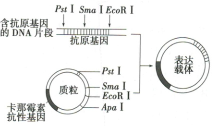2. (教材 P80 图 3 - 6 改编)下图是利用基因工程技术培育转基因植物,进而生产可食用疫苗的部分过程示意图,其中 PstⅠ、SmaⅠ、EcoRⅠ、ApaⅠ为四种限制性内切核酸酶。下列说法错误的是(