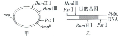 5. 图甲、图乙中的箭头表示三种限制性内切核酸酶的酶切位点,Ampᴿ表示氨苄青霉素抗性基因,neo 表示新霉素抗性基因。下列叙述正确的是(