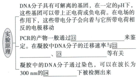 (1)㉑琼脂糖凝胶电泳 ㉒凝胶的浓度 ㉓DNA分子的大小和构象 ㉔紫外灯