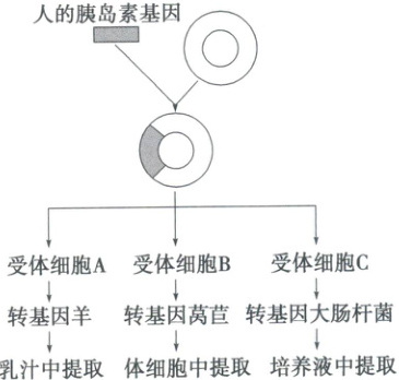 2. 如图表示利用基因工程生产胰岛素的三种途径,据图判断,下列叙述正确的是(