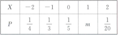 (1)依题意,由分布列的性质得$\frac{1}{4}+\frac{1}{3}+\frac{1}{5}+m+\frac{1}{20}=1$,解得m=$\frac{1}{6}$,$E(X)=-2×\frac{1}{4}-1×\frac{1}{3}+0×\frac{1}{5}+1×\frac{1}{6}+2×\frac{1}{20}=-\frac{17}{30}$.