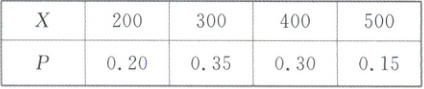 由题意得,随机变量X的可能取值为200,300,500,可得$P(X=200)=\frac{2+16}{90}=0.2$,$P(X=300)=\frac{36}{90}=0.4$,$P(X=500)=\frac{25+7+4}{90}=0.4$,所以随机变量X的分布列为X 200 300 500 P 0.2 0.4 0.4