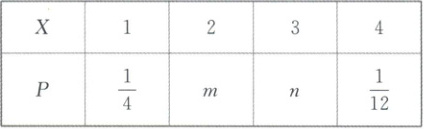 解析:选BCD.根据分布列的性质可知m+n=1-$\frac{1}{4}-\frac{1}{12}=\frac{2}{3}$①,因为Y=12X+7,所以$E(Y)=12E(X)+7=34$,解得$E(X)=\frac{9}{4}$,则$E(2X)=2E(X)=\frac{9}{2}$,故A错误,B正确;又由分布列可得$1×\frac{1}{4}+2×m+3×n+4×\frac{1}{12}=\frac{9}{4}$,整理得$2m+3n=\frac{5}{3}$②,联立①②解得m=$\frac{1}{3}$,n=$\frac{1}{3}$,故C,D正确.故选BCD.